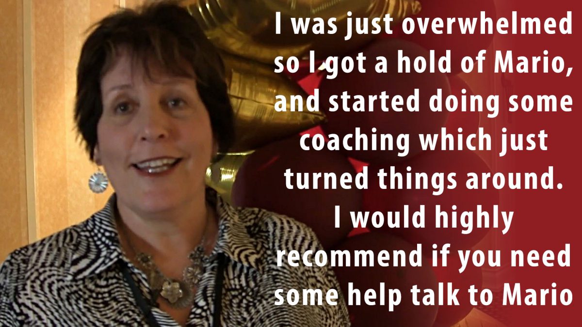 Hello I’m Becky Norwood the name of my business is instant customer connections, I actually met Mario at Cross Channel Mojo and I was just overwhelmed it was before any other event that I had attended and I got a hold of Mario and asked him a lot of questions and in return he started doing some coaching for me which just turned things around. I would highly recommend if you need some help talk to Mario, he’s also done a quick book and video that is very, very, very good it’s on the power of using video to market yourself, your business if you have a story to tell you got to tell it.